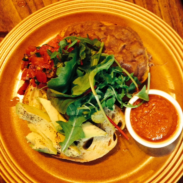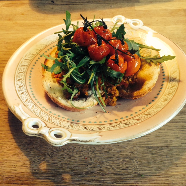 Chorizo, red onion, potato stack, Harissa roast tomatoes, wilted spinach & a poached egg £6 (veg option available £5)