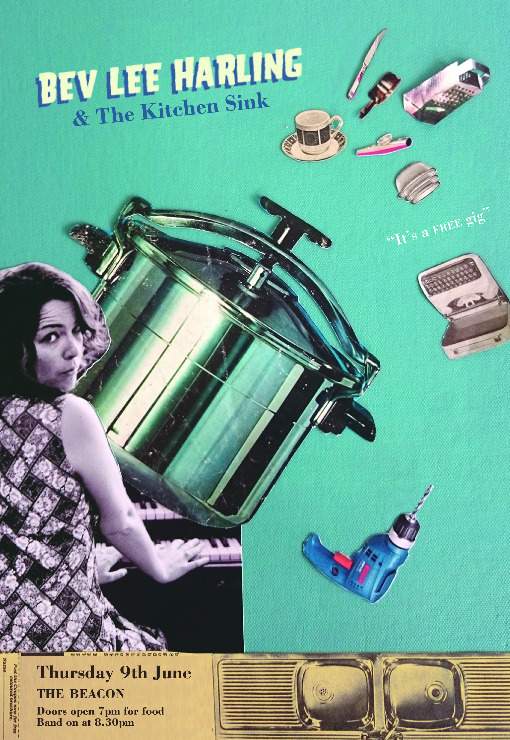 A unique and not-to-be-missed gig! Bev’s first Hastings appearance is happening here this Thursday. Expect dazzling vocals, old typewriters, cheese graters, glass orchestras, a drum kit made from a 1940’s suitcase and a fuzzy glow when you leave at the end of the night.