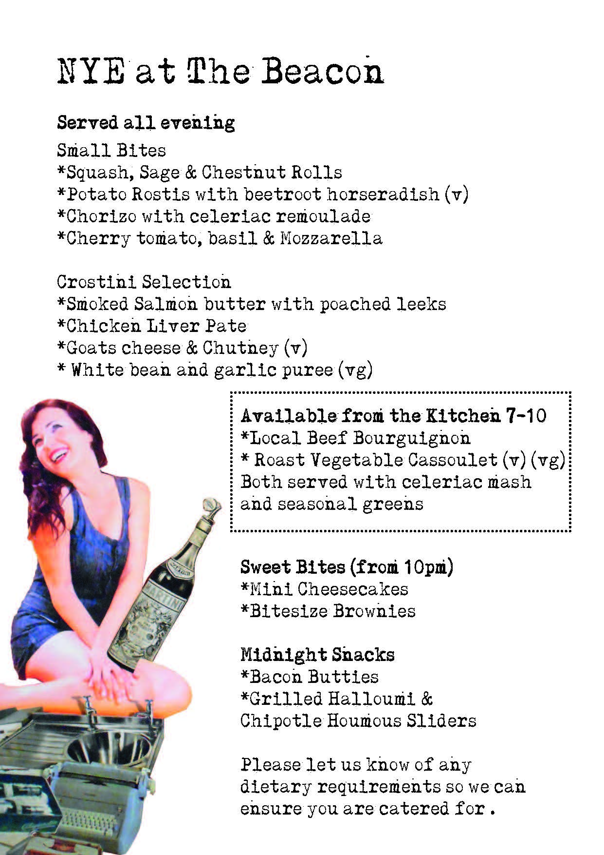 Please contact us ASAP if you’ve yet to get your ticket as spaces are limited, tickets are £45 for the whole evening which includes all food, champagne at midnight and of course all entertainment brought to you by the amazing Bev Lee Harling….
