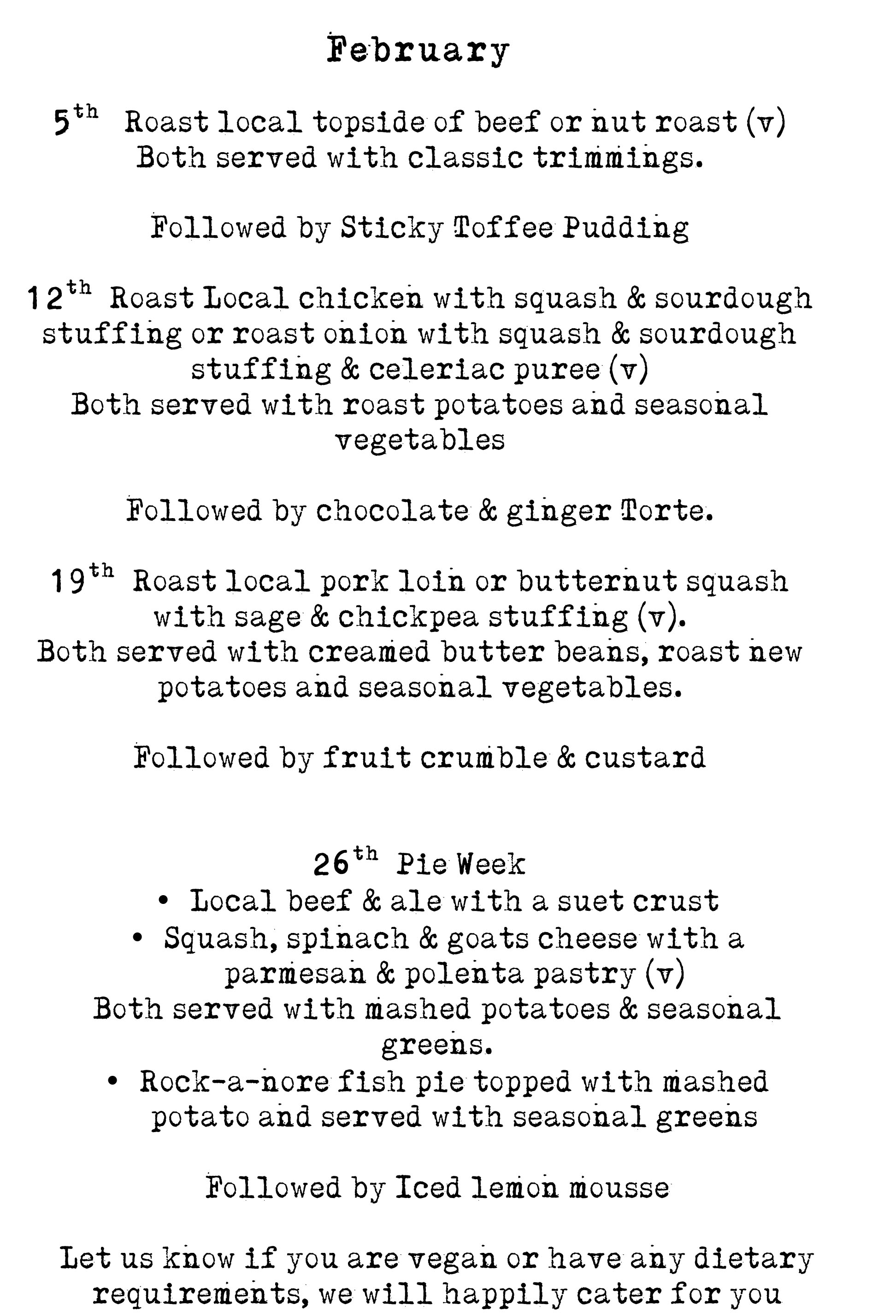 Following that, Sunday the 5th is the first of this years Sunday lunches. Hooray!