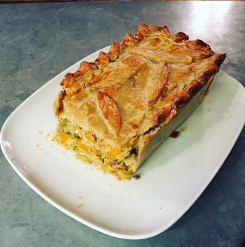 Local roast chicken with stuffing or a Veggie Wellington. Each served with roasties, seasonal vegetables and gravy. Followed by a white chocolate cheesecake. Vegan options always available.