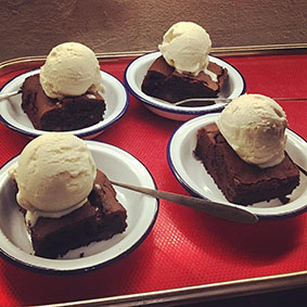 Dessert is a choice of sticky toffee pudding with Northiam Dairy double cream, local rhubarb and apple crumble with custard (ve) or mini Pavlova.