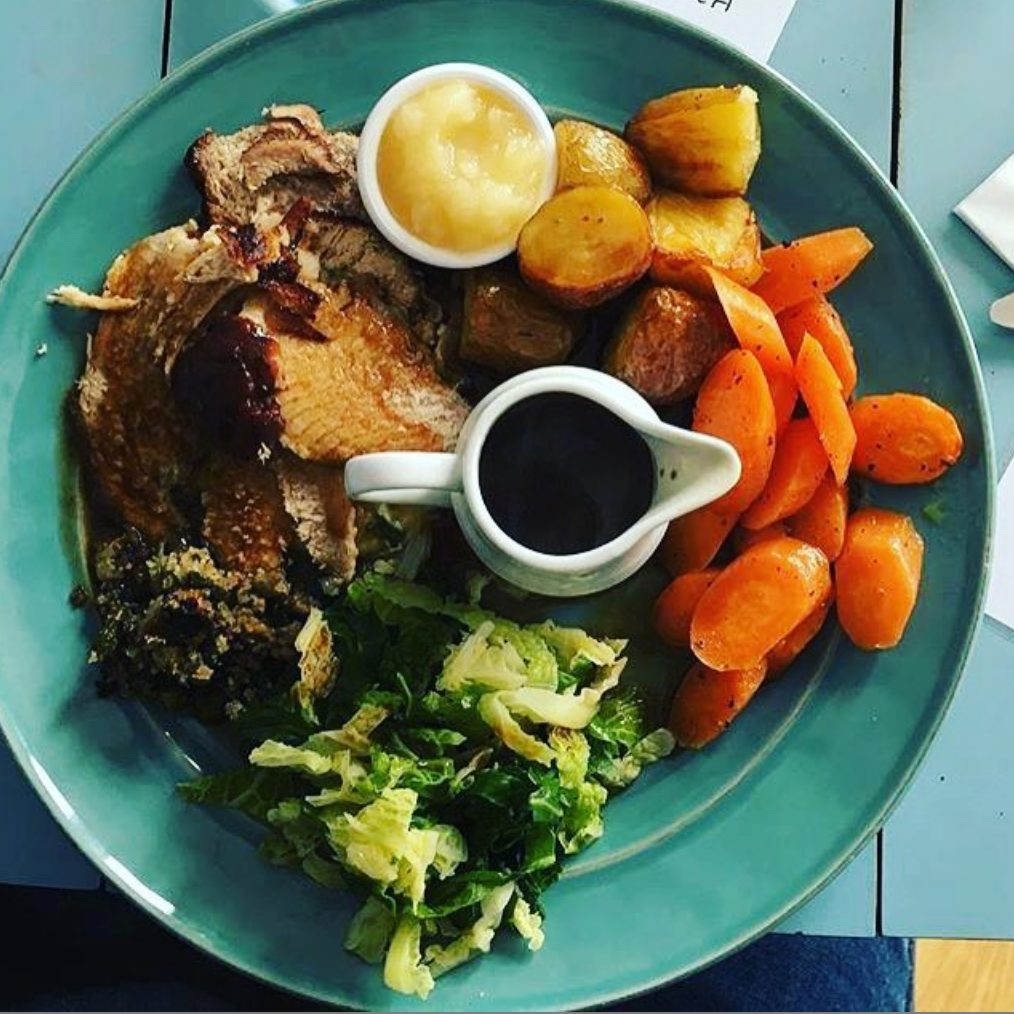 Each main comes with squashed roast potatoes, seasonal vegetables and a home brewed gravy.