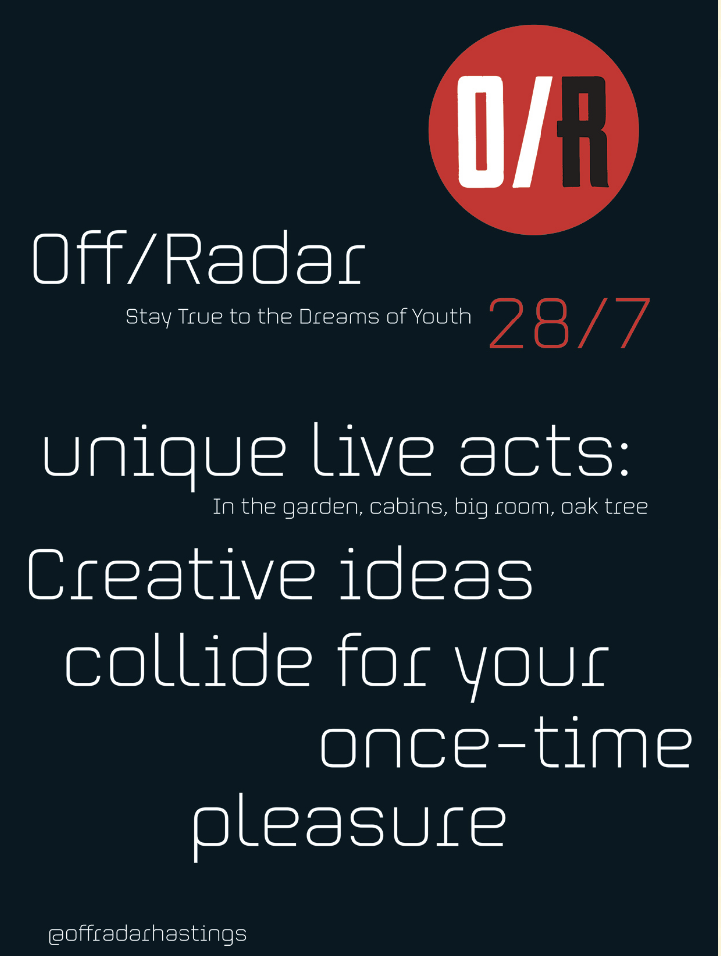 provides a platform to try out new ideas, experiment and collaborate. Set in various areas of the grounds here at the house OFF / RADAR seeks to present inclusive entertainment to supportive open-minded audiences.