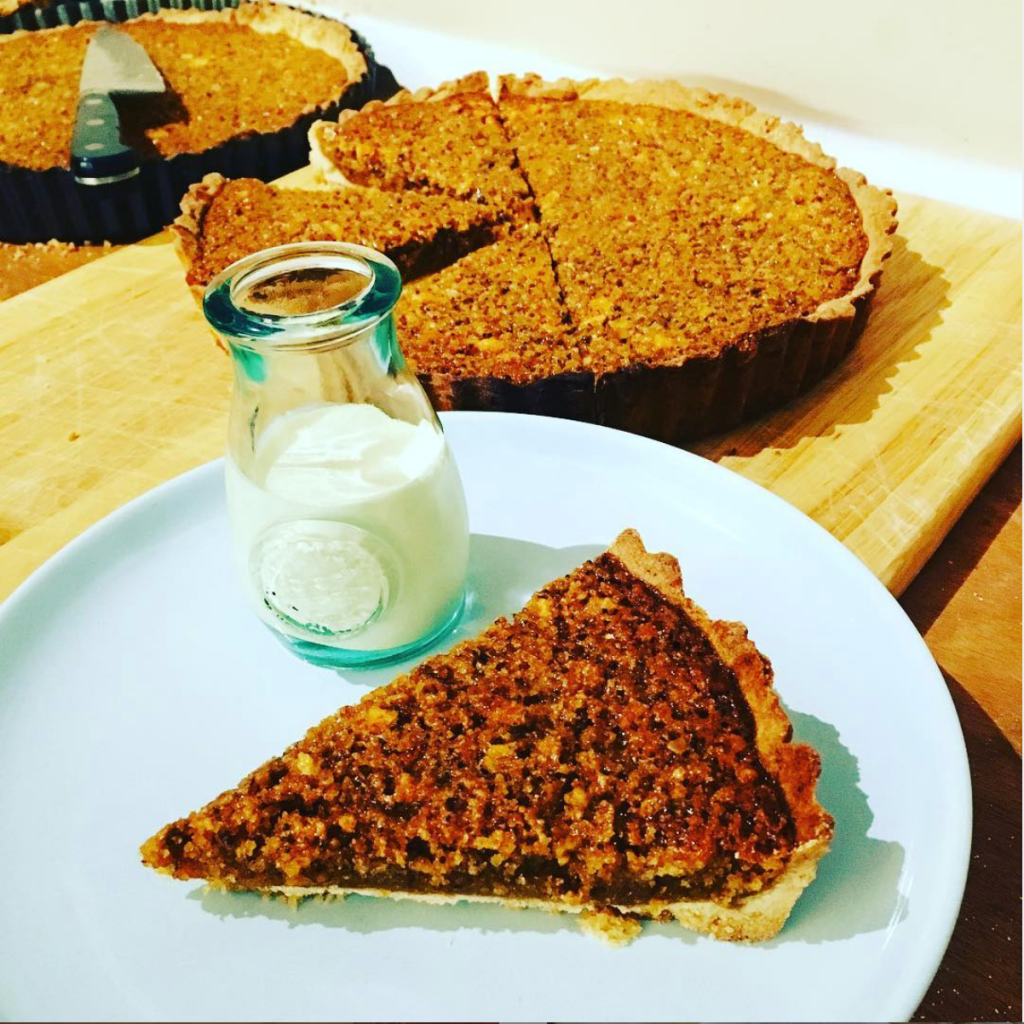 Dessert this week is a choice of Treacle Tart or seasonal fruit crumble (vegan)