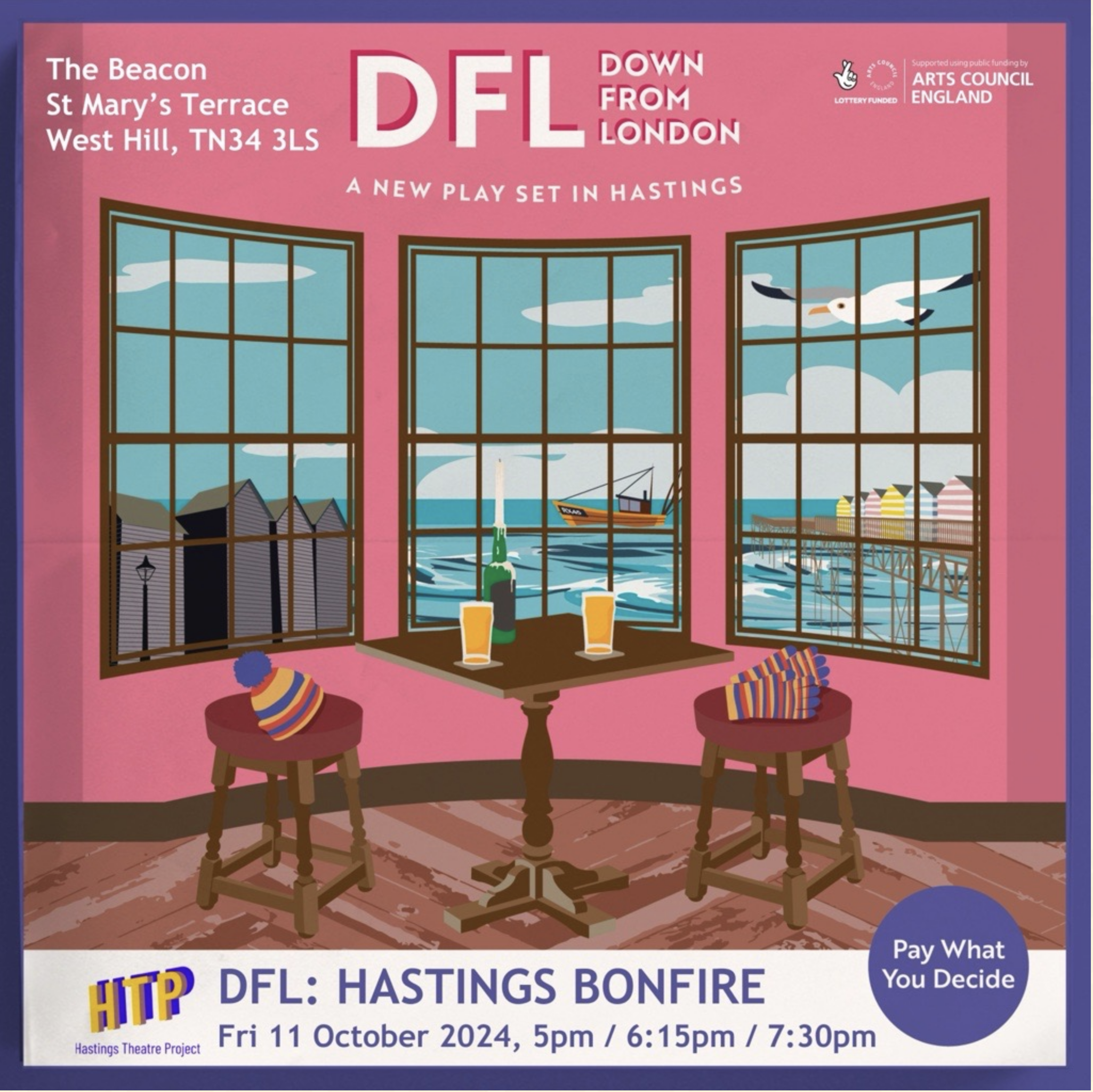 DFL: Hastings Bonfire is an episodic new play written by Nadine Passley. It is a girl-meets-boy romcom interrogating contemporary themes, think One Day-on-Sea, Notting Hill on the West Hill.