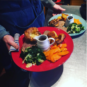 From midday onwards we’ll be offering a locally sourced pork with home made apple sauce or our own vegetarian or vegan Nut Roast, each served with roasties, seasonal vegetables and gravy.